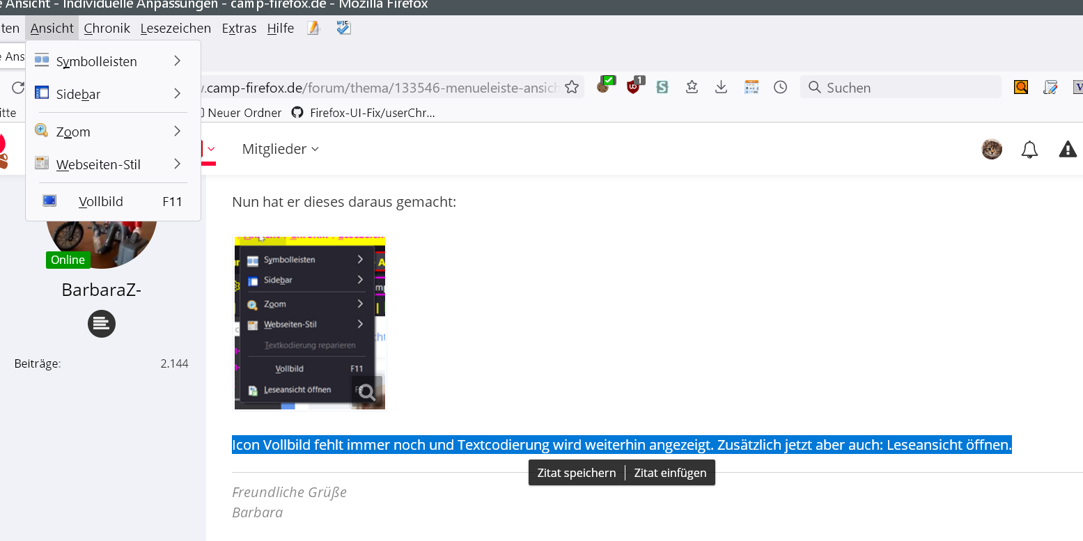 Kann man da bei der "Textkodierung reparieren" wirklich kein Icon setzen?
