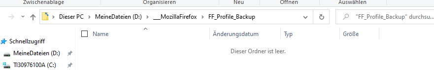 Wenn die Sicherung funktionieren soll, dann muss auf D: der Ordner ___MozillaFirefox vorhanden sein, und es muss den Unterordner