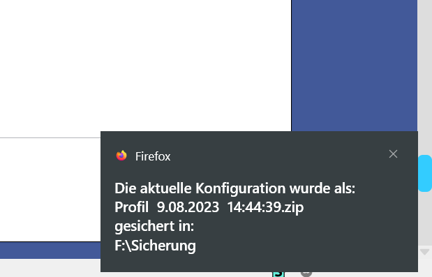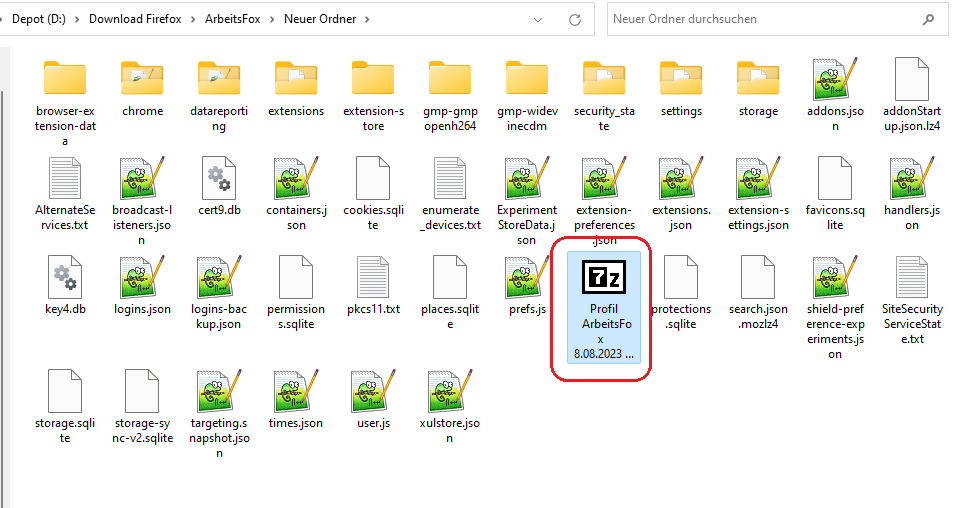 Der Name des Profilordners lautet in diesem Fall aber sqqcbryv.Arbeits-Fox-1691506530881, und genau so müsste er nach dem Entpacken lauten (so mein Gedanke).