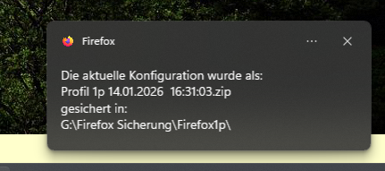 Während des Backups "blockiert" das Skript den Firefox komplett, was absolut richtig so ist, da ja während des Backups auf keinen Fall Veränderungen an den Firefox-Dateien (z.B. prefs.js) durchgeführt werden dürfen. Aber dieses Blockieren wird dem Nutzer des Skripts in keinster Weise (visuell) sichtbar gemacht. Selbst der Mauszeiger verändert sich erst, wenn man trotzdem versucht den Firefox anzusprechen. Das empfinde ich als nicht sonderlich anwenderfreundlich und kann, wenn das Backup länger dauert, auch z.B. dazu führen, dass man den Prozess selber abschießt, weil man denkt, der hängt jetzt irgendwie (ist mir, ungeduldig wie ich bin, wirklich beim ersten Start passiert...
