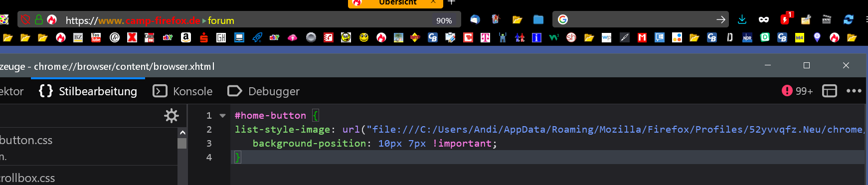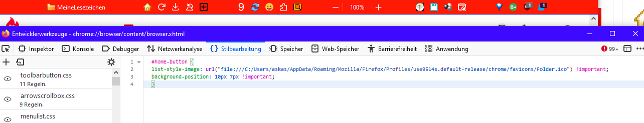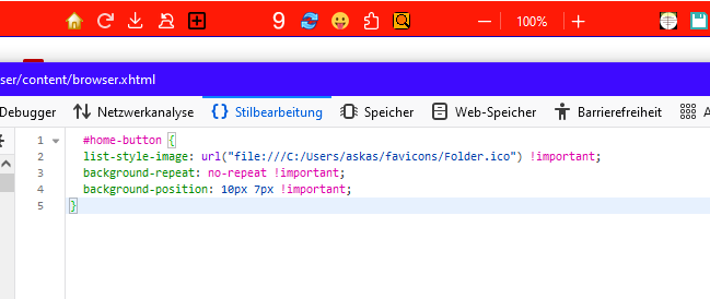 Doch doch.. im userChrome.css gibts keine Probleme. Ich meine nur für Tests mit Browser-Werkzeuge.
