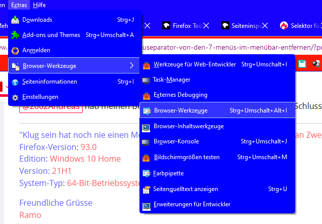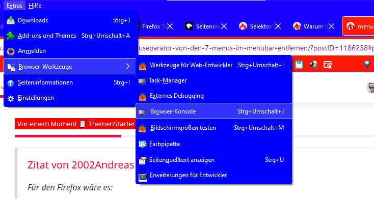 ehmm... ich habe dort keine Browser Werkzeuge dann muss es die Browser Konsole sein für Firefox?