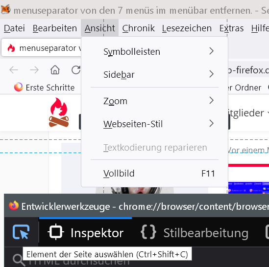 aber das Werkzeuge für Web-Entwickler ist doch für die Webseite. Ist es auch für den Firefox?