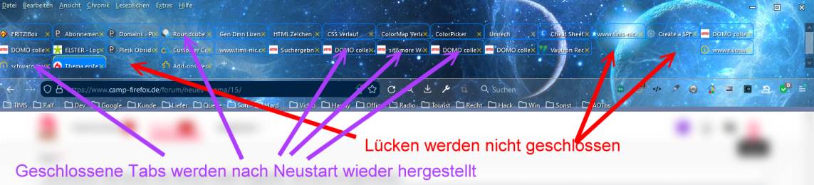 1. Geschlossene Tabs werden nach einem Neustart von FF wieder hergestellt.
