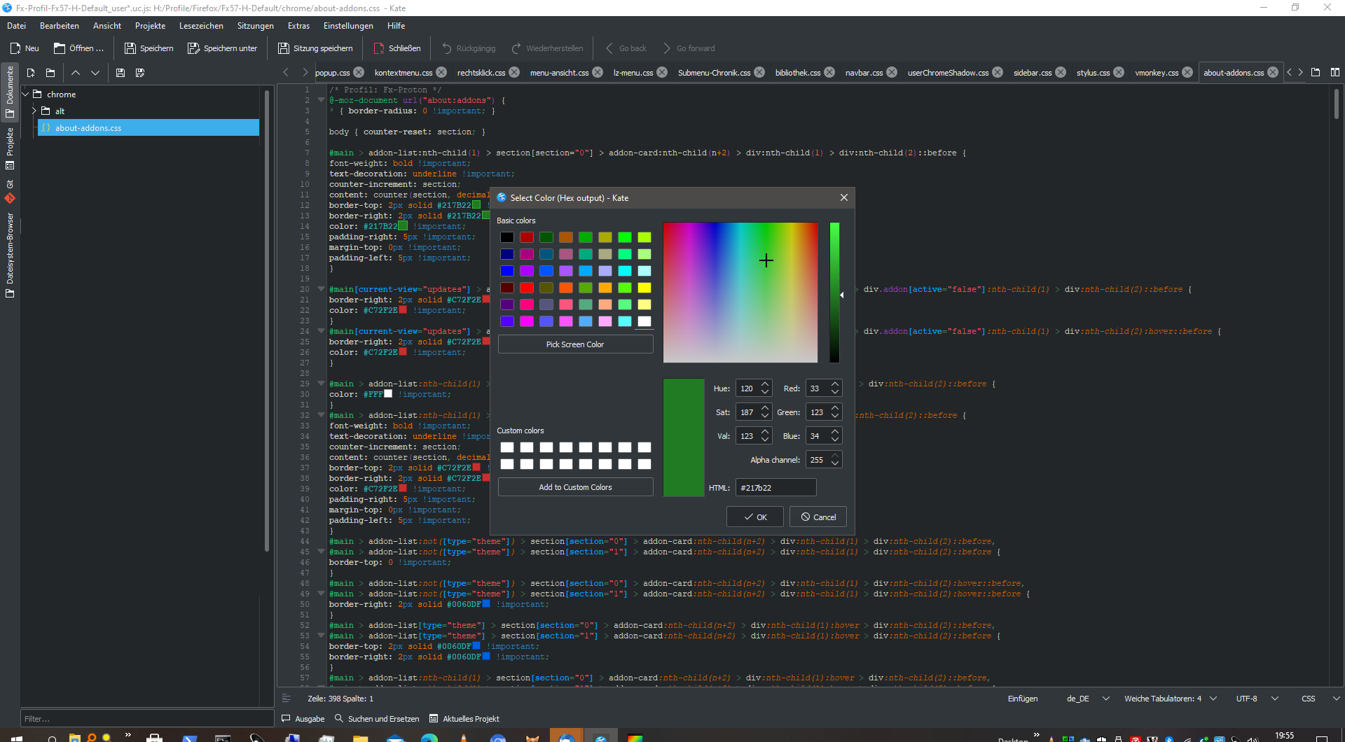und wenn man auf dem Kästchen geht mit der Maus, dann sieht man ein Fenster, wo man bei Wunsch die Farbe ändern kann.