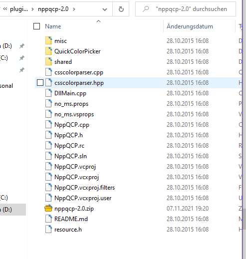 Bitte wieder löschen (die Datei ist viel zu alt) und dann diese hier https://github.com/vinsworldcom/n…2.1.1.1-x64.zip herunter laden, entpacken und dann wie gesagt einen Ordner namens NppQCP im Plugin Verzeichnis von Notepad++ erstellen und dort die entpackte NppQCP.dll rein kopieren.