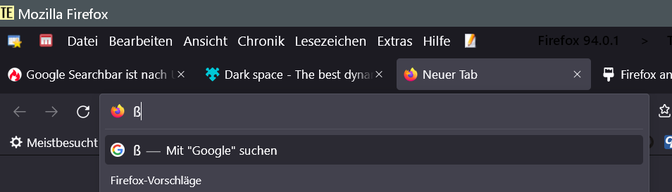 Vor allem sind ja nicht nur die Farben anders - Themes können nur die Farben ändern! -, das Layout des Suchfelds ist ebenfalls anders. Also entweder stimmt die Angabe nicht, dass Firefox 94 genutzt wird, oder es sind in jedem Fall Anpassungen aktiv, sei es nun via userChrome.css, Script oder irgendeine about:config-Einstellung, falls es noch eine gibt, über die man auf ein altes Layout umstellen kann. Aber ein nicht in irgendeiner Weise angepasster Firefox sieht mit egal welchem Theme so nicht aus.