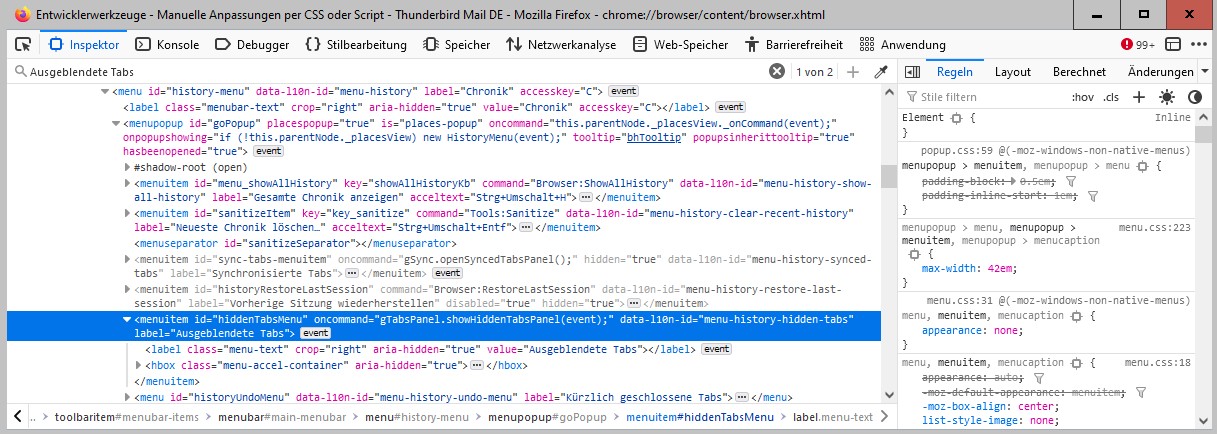 Da finde ich nirgendwo "Ausgeblendete Tabs".