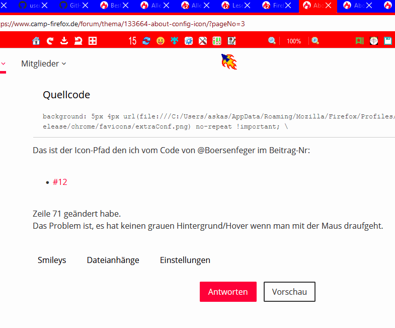 Er muss ins Bett, was hat er hier RE: About:config Icon geschrieben?