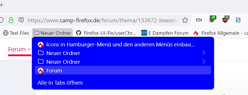 Er missbraucht ja die Lesezeichensymbolleiste als normale Symbolleiste und hat sonst lediglich einen Ordner für die Lesezeichen darin.