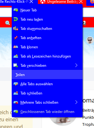 hab ein Problem.. Wenn ich auf Tab-Rechtsklick mache hat es ein Button "Teilen" hab versucht dort ein Icon zu setzen aber funkt nicht.. bei einigen Anderen hat es geklappt.