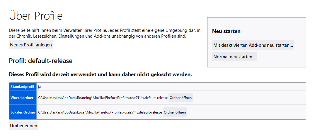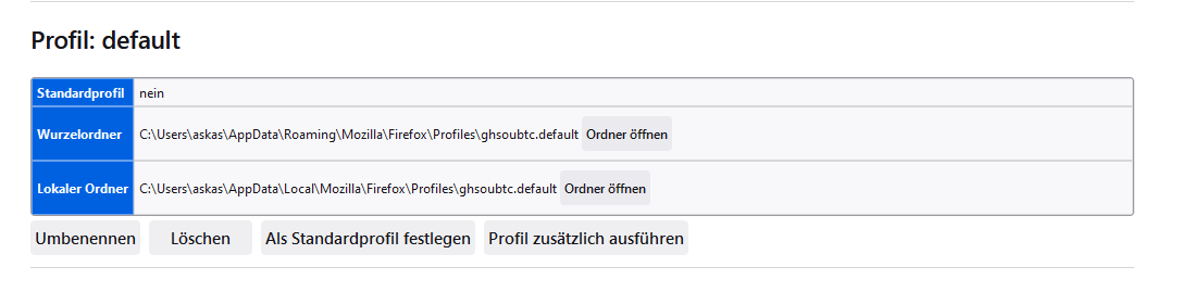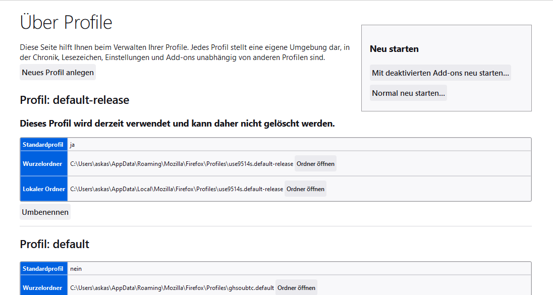 ja im about:profiles ist es der Obere und im Explorer der Undere
