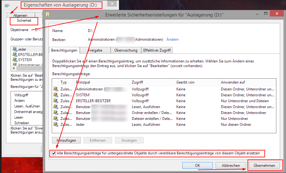Zitat von "WiSoGanz oben in dem Screenshot kannst Du den Besitz übernehmen. Trag dort den Besitzer ein, den du eintragen möchtest.