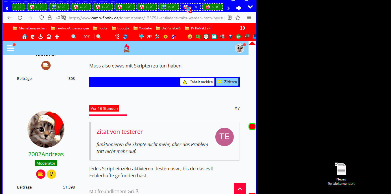 Nach Neustart von Firefox werden einige Tabs - ich kann kein Muster erkennen - nach Neustart von Firefox nicht korrekt geladen.