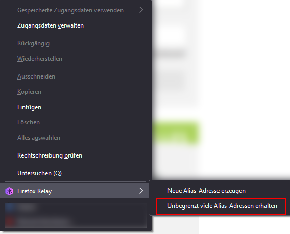 .Ich habe es jetzt überprüft und ein "schwachsinniges" Verhalten konnte ich nicht bestätigen, ganz im Gegenteil: Ein Untermenü erscheint ausschließlich, wenn es mindestens zwei Einträge von Firefox Relay gibt. Das ist definitiv sinnvoll, damit die Erweiterung das Kontextmenü nicht zumüllt. Gibt es nur einen Menüeintrag, erscheint dieser auch auf der ersten Ebene. Und das ist auch kein Verhalten, welches das Team von Firefox Relay so entschieden hätte. Das kommt vom WebExtension-Framework. Alle Erweiterungen mit Kontextmenü verhalten sich so. Mozilla hat sich hier selbst keine Vorzugsbehandlung gegeben.