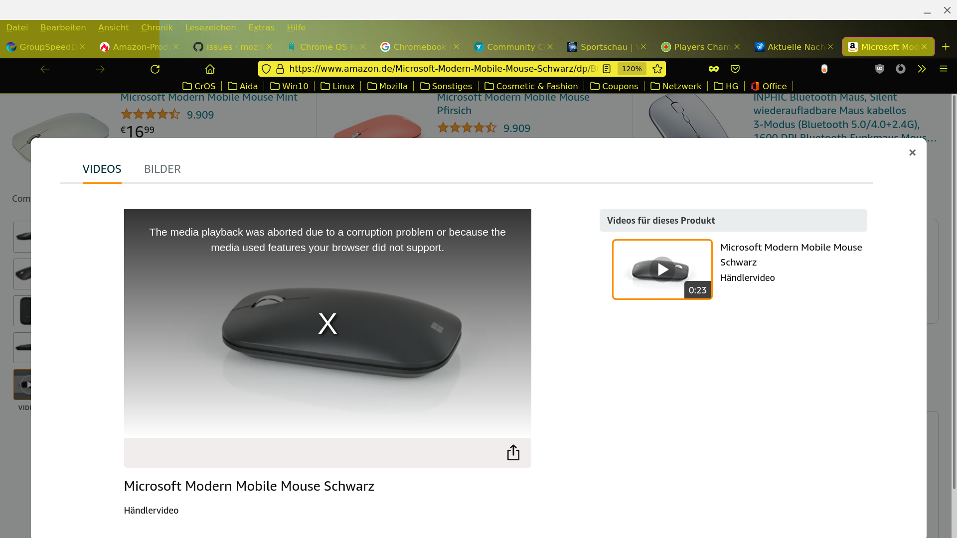 Wenn ich das Vorschaubild anklicke, um das Video zu starten, geht das nicht und außerdem verschwindet die Scroll-Leiste rechts, am Rand des FF.