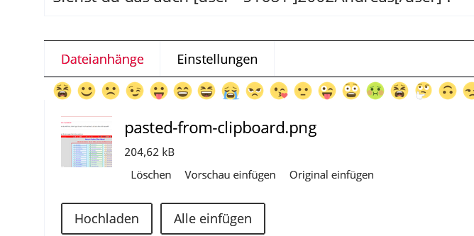 Ich mache das Bild mit "Shift und windows-tast und S" drücken, dann speichert es in der Zwischenablage und ich füge es hier ein.