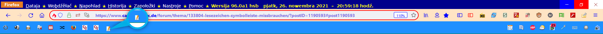 • Danke euch allen für eure Bemühungen. Hab mir überlegt, die Zusatzleiste zu entfernen und die urlbar und url-bar-container leiste also die Symbolleiste etwas grösser zu machen. :)
