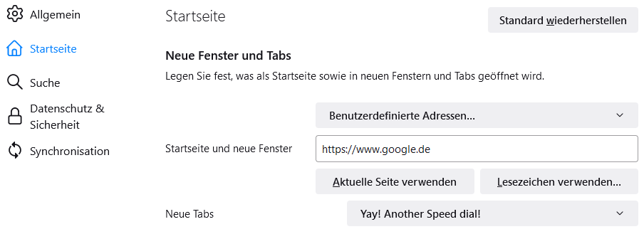 "Startseite als neue Tab-Seite" erstellt von "Minemes"