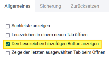 "Den Lesezeichen Button hinzufügen anzeigen" ,aber nur vorübergehend,