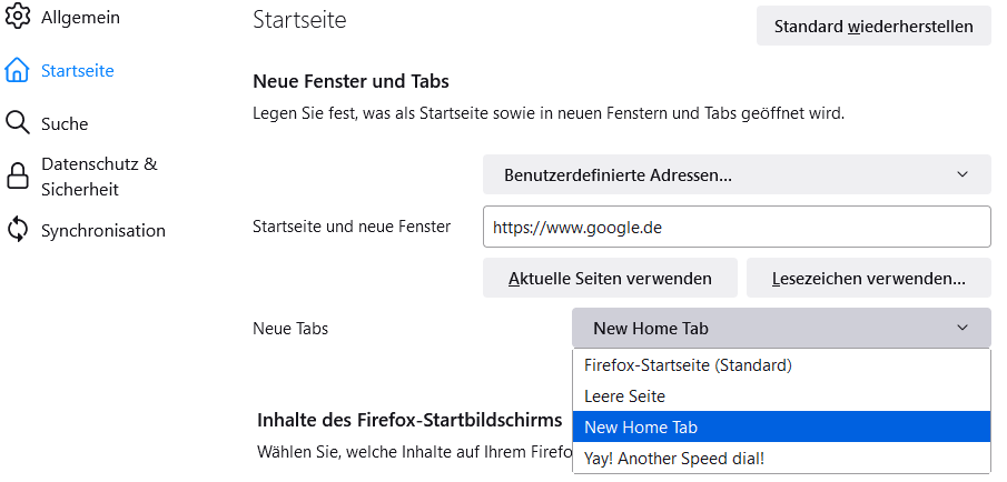 Hier zu finden => https://addons.mozilla.org/de/firefox/addon/new-home-tab