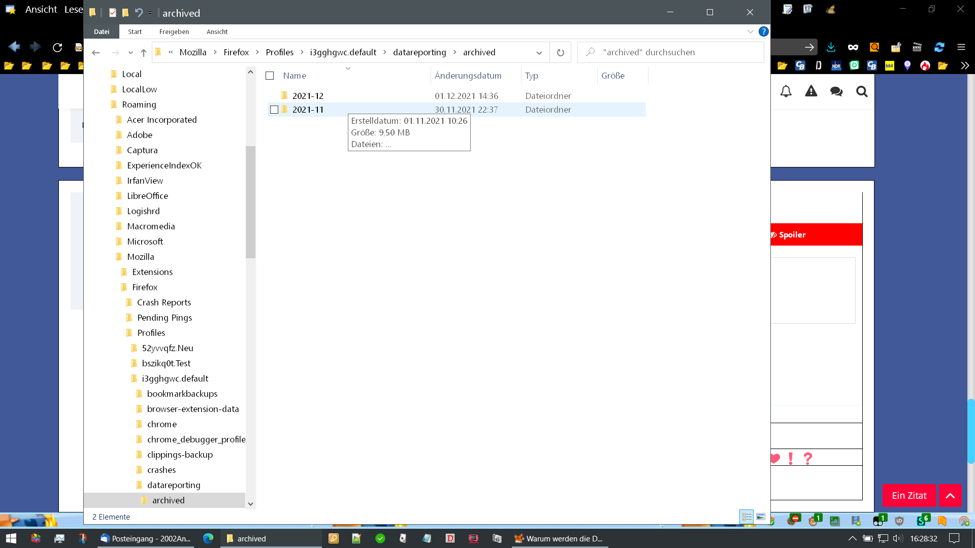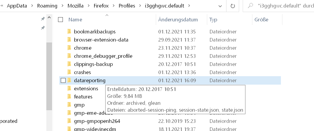 Bei der Überprüfung meiner Rücksicherung wurde ich wegen einer hohen Datenspeicherung auf den Ordner datareporting- achived aufmerksam, da sich dort eine hohe Zahl von