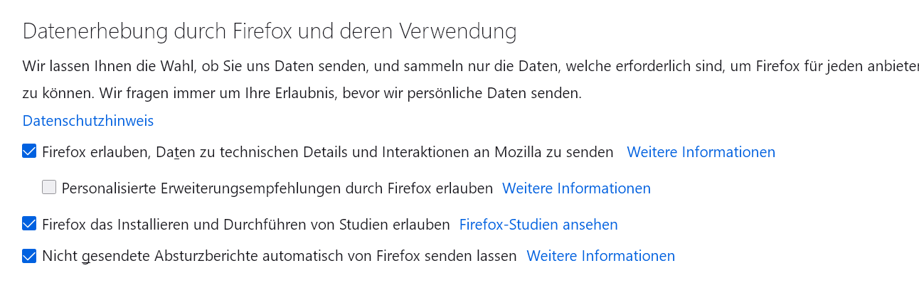 In der Datenerhebung durch Firefox und deren Verwendung sind diese ausgeblendet !