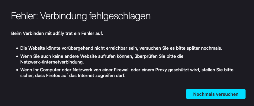 Firefox auf Mac öffnet adf.ly Adressen nicht, Safari hingegen schon