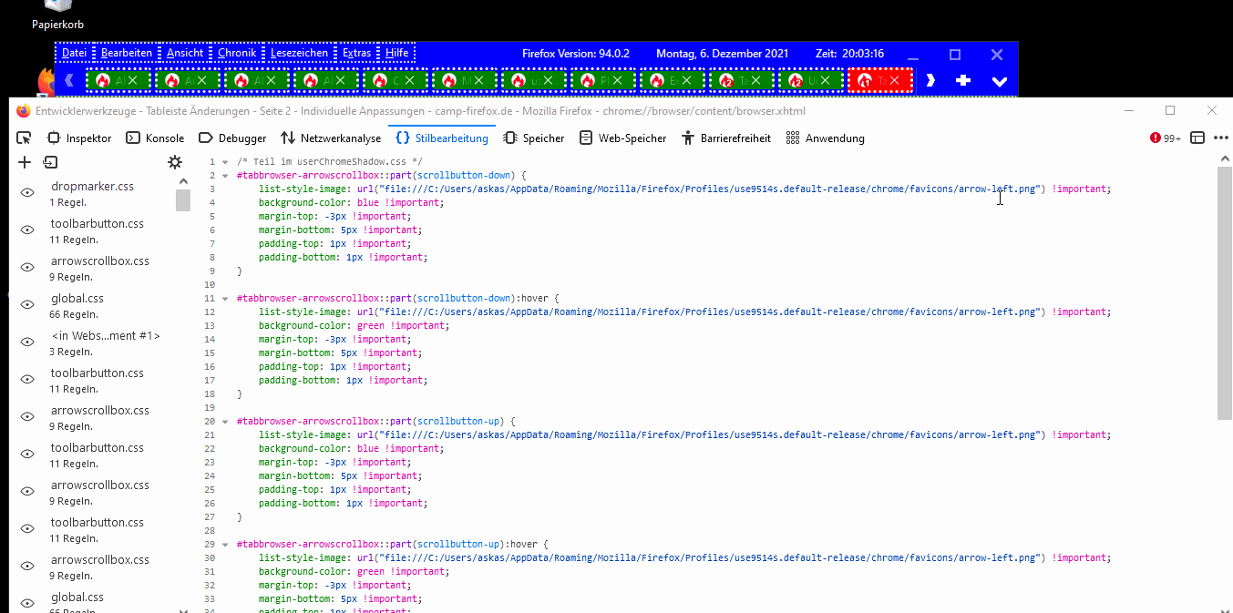 Ich nutze eine Testdatei für die userChrome.css und die userChromeShadow.css.