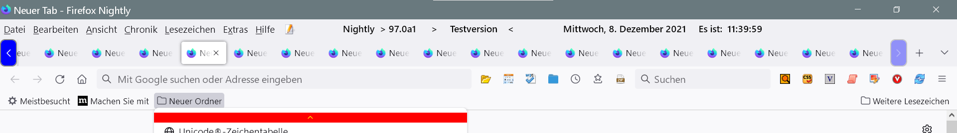 Im Lesezeichenpopup ist der HG der Pfeile rot, aber im Überlauf der Tabs sind die Pfeile ganz normal grau und nicht blau