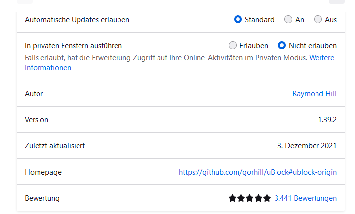 Die Sicherheitslücken wurden am 22. November in der Version für Firefox und am 3. Dezember in der Version für Chrome behoben. Wer noch eine ältere Version von uBlock Origin nutzt, sollte schnellstens aktualisieren.