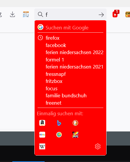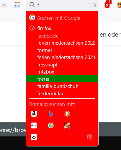 HG der eingestellten Suchmaschine oben grün