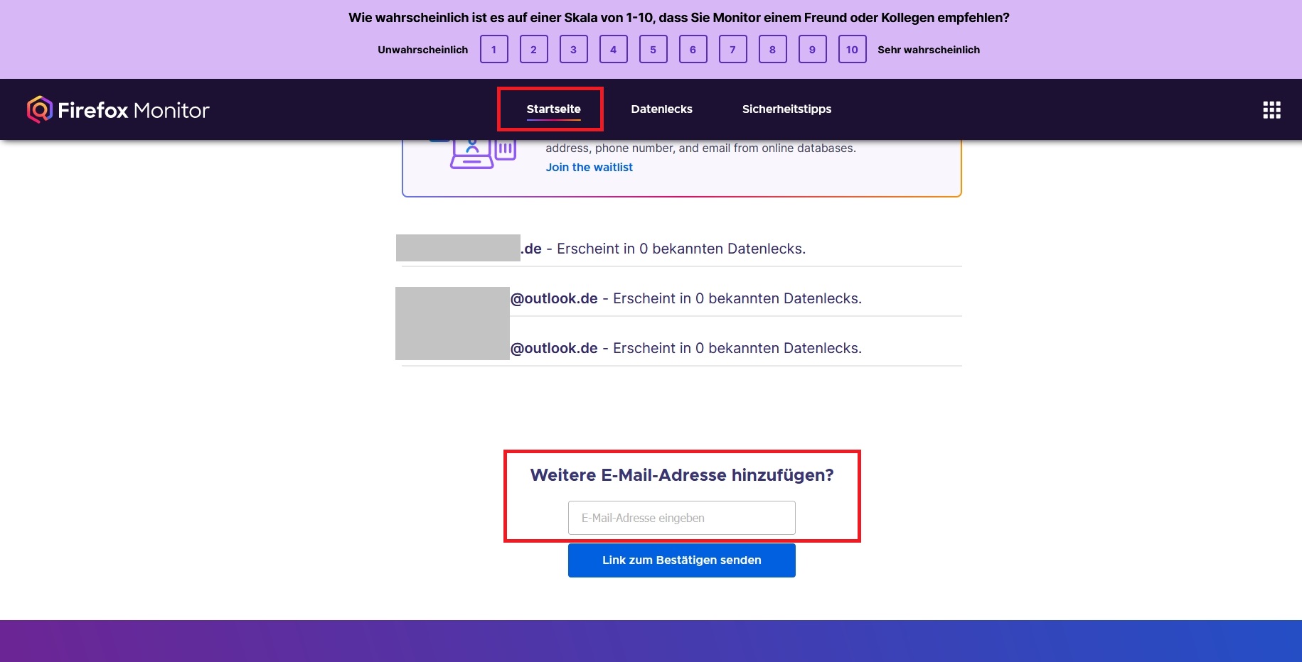 weitere Mailadressen in Firefox Monitor einfügen