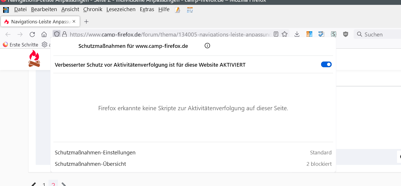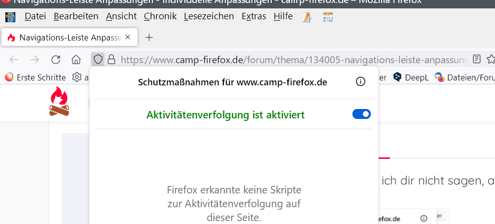 Besser wäre natürlich: Schutz vor..., und nicht dass die Verfolgung aktiviert ist. ![]()