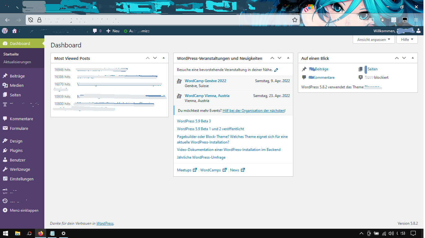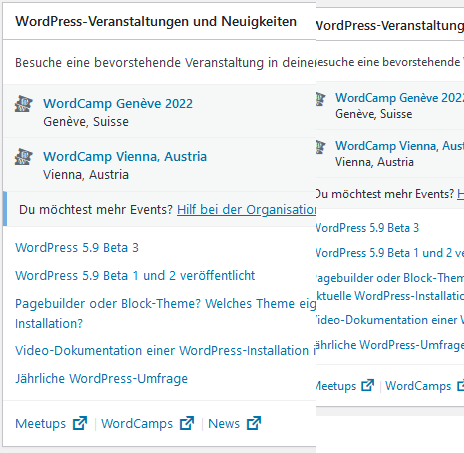 traue mich gar nicht damit um die Ecke zu kommen aber manche Websites sehen merkwürdig aus. Weil mein Dashboard in WordPress plötzlich viel größere Metaboxen anzeigt, aber die Schrift so dünn ist, ging ich davon aus, dass ich was verstellt hab.Hatte ja zuvor tatsächlich Änderungen an der Header php vorgenommen. Doch egal, wo ich suchte u. was ich änderte, die Darstellung blieb so. Dann habe ich meine Website auf den 17.12.2021 8:08 Uhr zurückgesetzt, was sich 3 Stunden später als vollkommen überflüssig heraus stellte. Eine meiner Lieblingswebsites, auf der ich gern ein Tool nutze, wird so überdimensioniert groß angezeigt, dass ich damit nicht mehr arbeiten kann u. will.
