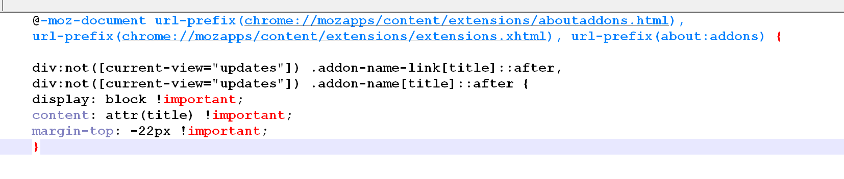 url-prefix(chrome://mozapps/content/extensions/extensions.xhtml), url-prefix(about:addons) {