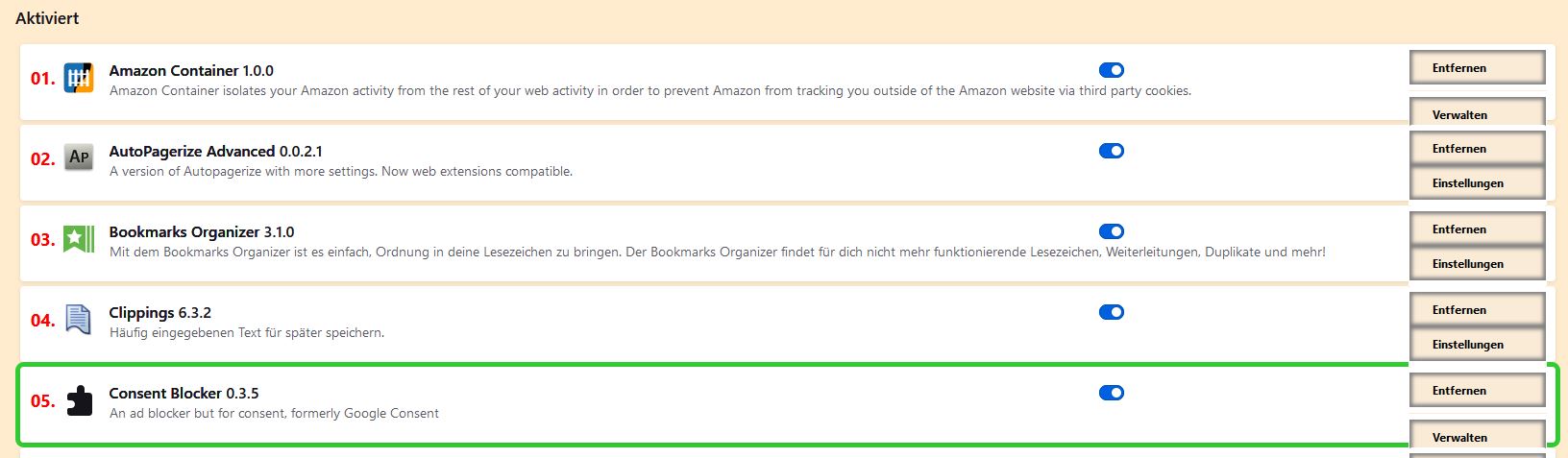 Erstaunlich, dass ein neuer Reiter in about:addons hier schon entdeckt wurde, aber der neue Reiter in about:preferences noch nicht. Immerhin werden beide standardmäßig noch nicht angezeigt. ![]()
