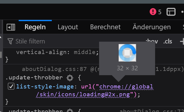 Weiterhin verschiebst du damit den ganzen Eintrag nach links, damit der Original Throbber durch den dunklen Hintergrund verdeckt wird.