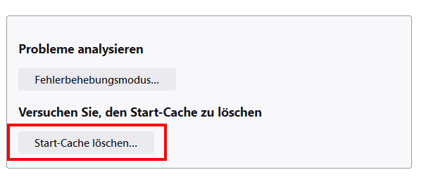 Außerdem könntest du noch den Start-Cache des FF löschen und zwar unter Menü->Hilfe->Weitere Informationen zur Fehlerbehebung: