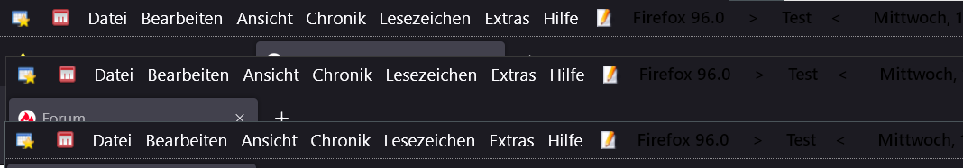 ich habe beim FF das dunkle Theme installiert. Ich habe meisten mehrere (aktuell 4) FF in eigenen Fenstern geöffnet - für jedes meiner Arbeitsgebiete eines. Wenn die nun übereinander liegen, kann ich fast nicht mehr erkennen, wo das eine FF-Fenster aufhört und das nächste beginnt. Hier liegen 3 Fenster übereinander, in der Mitte ist nicht mehr erkennbar, welches Fenster wo endet: