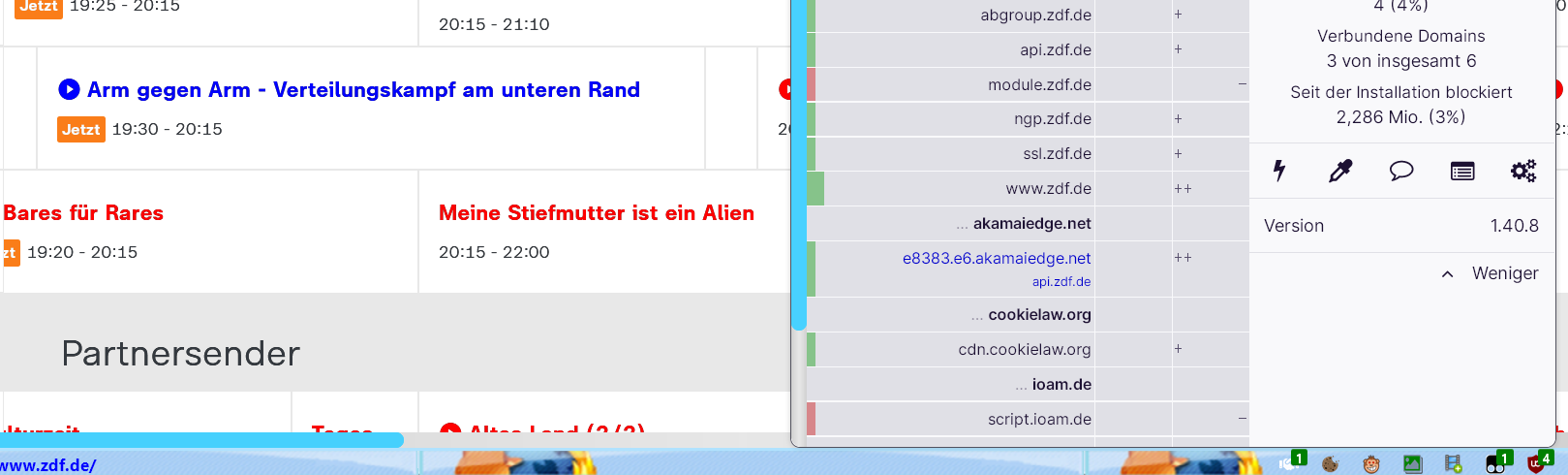 Stelle gerade fest, dass mit dem Code fürs zdf auf https://www.zdf.de/live-tv unter "Programm" bei Klick auf die einzelnen Sendunge nicht mehr aufploppen kann.