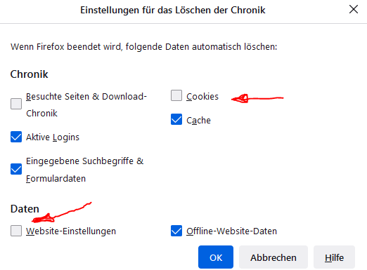ich habe Firefox so eingestellt, dass Cockies beim Beenden gelöscht werden.