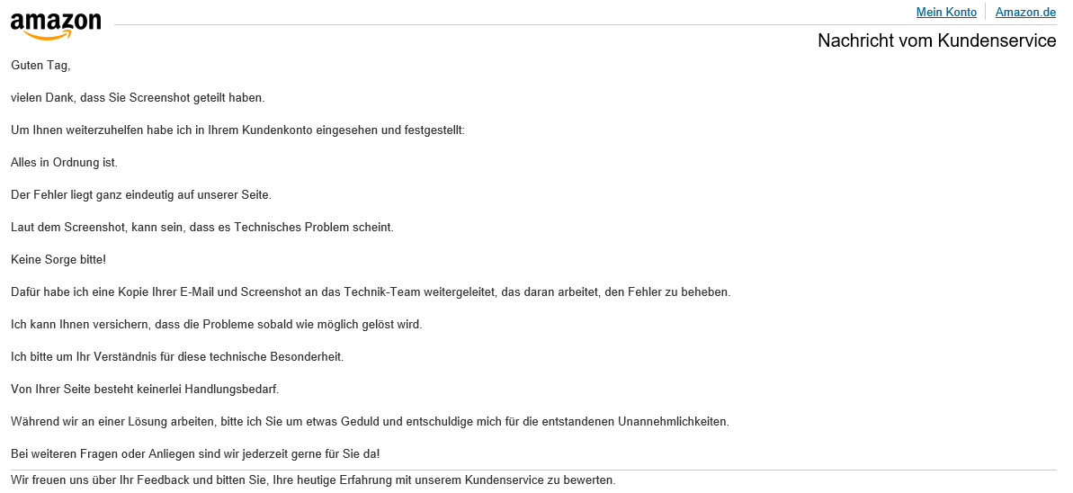 ich hab neuerdings folgendes Problem, bei der Suche in Amazon (offensichtlich nur in FF, probehalber in Edge getestet, dort ist kein Fehler). Egal, was ich als Suchbegriff eingebe (sogar bei keinem Suchbegriff und Klick auf die Lupe), es kommt immer die gleiche Fehlermeldung: