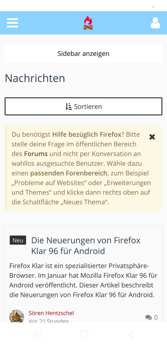 Wenn ich bei der Android Version von Firefox für eine Webseite 'Installieren' auswähle und sie dann direkt von der Startseite aufrufe, so wird die Seite nicht korrekt dargestellt. Viel mehr hat man oben und unten eine Leiste. Oben wo normalerweise die Adressleiste etc. ist, die ja ausgeblendet sein sollte. Und unten wo normalerweise die Navigation von Android ist, sprich diese wird unbenutzbar.