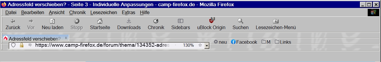 Es ging in meinem Beispiel darum, dass sich die Urlbar verschieben lässt, und nicht wie du behauptet hast, das geht nicht.