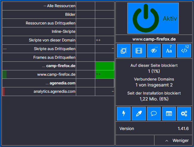 1. Anwendung ganz normal öffnen ( links Klick ), z.B. uBlock.