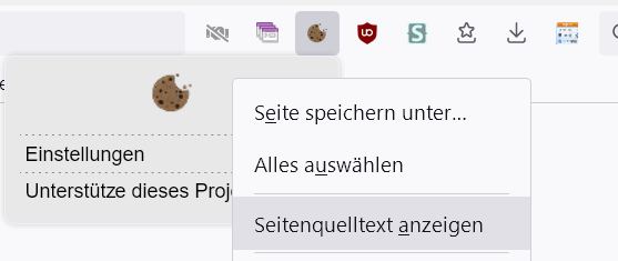 Dort kannst Du dann Seitenquelltext anzeigen anklicken