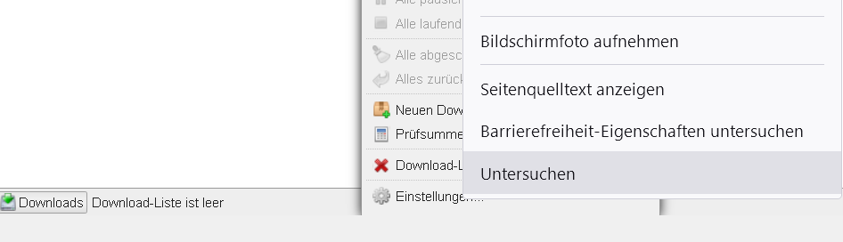 Dann normal Rechtsklick..Untersuchen..und die Entwickler-Werkzeuge öffnen sich.