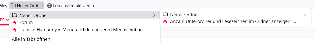 Du meinst aber schon die Lesezeichen aus der Lesezeichensymbolleiste, und nicht der Sidebar links ![]()