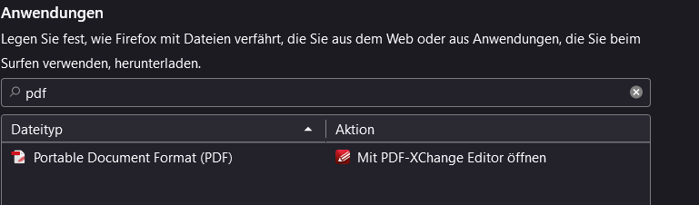 Ich bin grad am Verzweifeln: In Firefox ist eingestellt ,dass PDFs mit dem PDFExchange Viewer geöffnet werden sollen. In Windows habe ich die Standardanwendung für PDFs ebenso auf Diesen umgestellt. Öffne ich ein PDF aus dem Explorer funktioniert das auch.